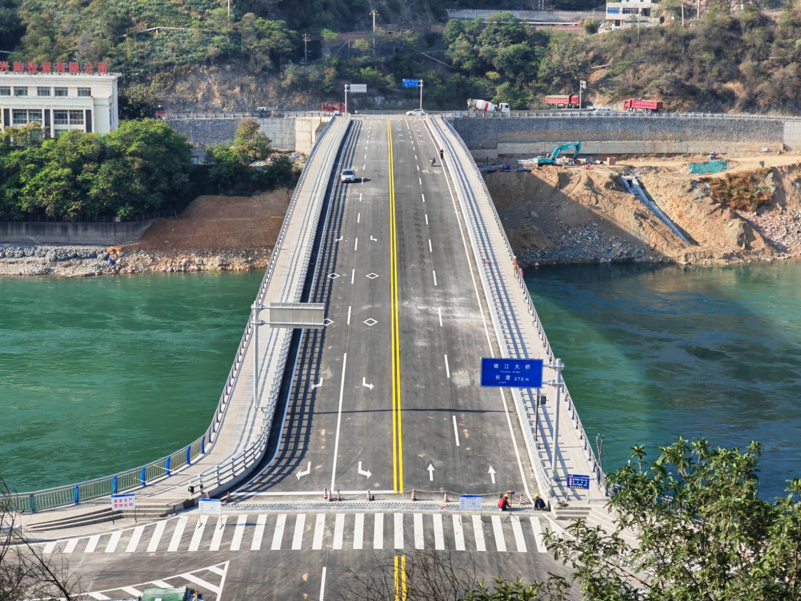 銀江大橋?qū)儆阢y江水電站配套建設(shè)項(xiàng)目,位于銀江水電站大壩下游1公里處,大橋左岸連接G353國(guó)道,右岸連接G227國(guó)道,是攀枝花人民期盼已久的“民生橋、幸福橋、富裕橋”。