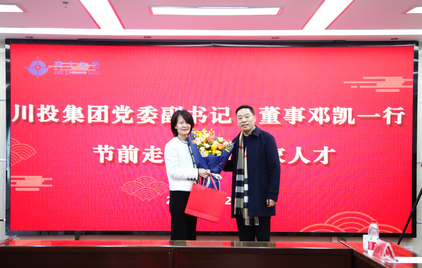 1月26日,集團(tuán)公司黨委副書記、董事鄧凱一行赴川投田灣河、佳友物業(yè)、交大光芒開展走訪慰問,為專家人才、退役軍人、困難職工和一線值守人員送去集團(tuán)關(guān)懷和新年祝福。