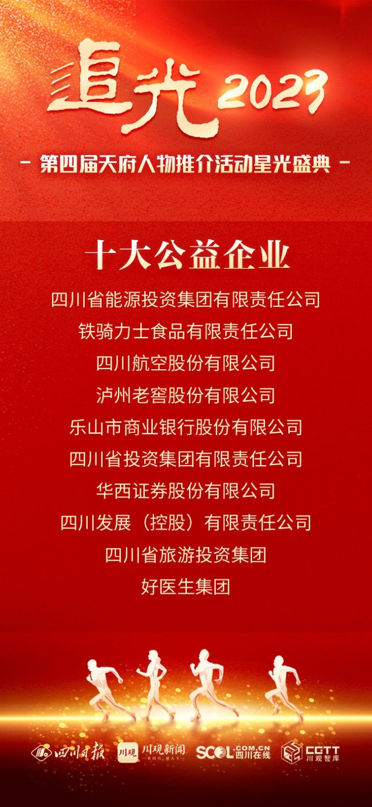 3月29日下午,在樂(lè)山舉行的追光2023·第四屆天府人物推介活動(dòng)星光盛典上,川投集團(tuán)獲評(píng)“四川十大公益企業(yè)”。集團(tuán)領(lǐng)導(dǎo)朱莉代表川投集團(tuán)參加典禮。