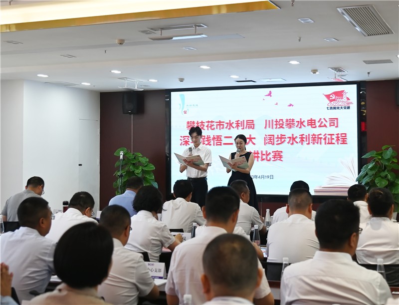為全面貫徹黨的二十大精神,扎實(shí)開展學(xué)習(xí)貫徹習(xí)近平新時(shí)代中國特色社會主義思想主題教育,在攀水電黨總支開展主題教育領(lǐng)導(dǎo)干部讀書班期間,為豐富學(xué)習(xí)形式,營造濃厚學(xué)習(xí)氛圍,近日,攀水電公司與攀枝花市水利局共同舉辦了“深學(xué)踐悟二十大、闊步水利新征程”深化“水潤花城”黨建品牌建設(shè)暨政企黨組織共建活動,開展征文和演講比賽。攀枝花市直機(jī)關(guān)工委常務(wù)副書記鮮明,攀枝花市水利局黨組成員、副局長林兆東,黨組成員、機(jī)關(guān)黨委書記胡嘉,川投能源副總經(jīng)理、攀水電公司黨總支書記、董事長、攀新能源董事長徐孝剛及讀書班成員參加此次活動并擔(dān)任評委。